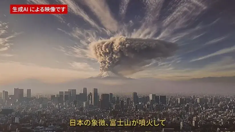 El metraje, de unos tres minutos de duración, comienza con una advertencia sobre el contenido generado con IA para posteriormente mostrar a una joven japonesa observando una notificación de erupción del Fuji tras más de tres siglos y observando las imágenes explosivas en las pantallas gigantes en el barrio tokiota de Shinjuku.