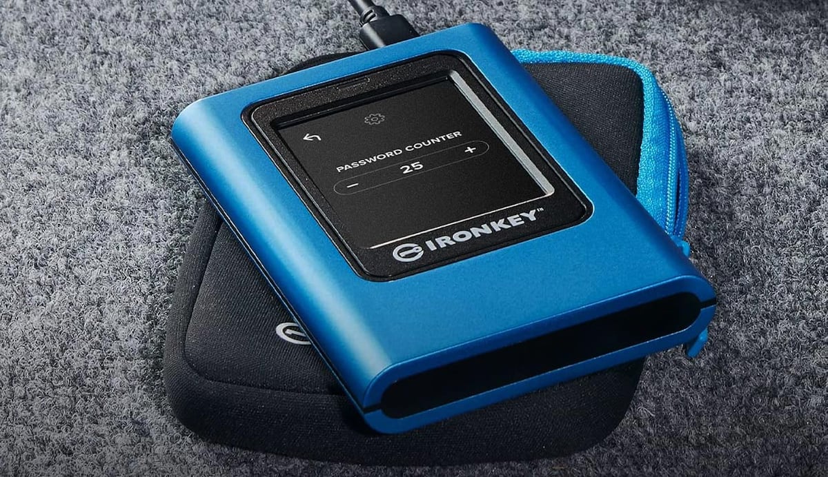 Pese a lo que pudiera parecer a simple vista, es algo sencillísimo de utilizar. Lo he probado con el Kingston Ironkey Valult Privacy 80ES, un disco externo de tipo SSD con una amplia pantalla táctil que centraliza sus funciones.