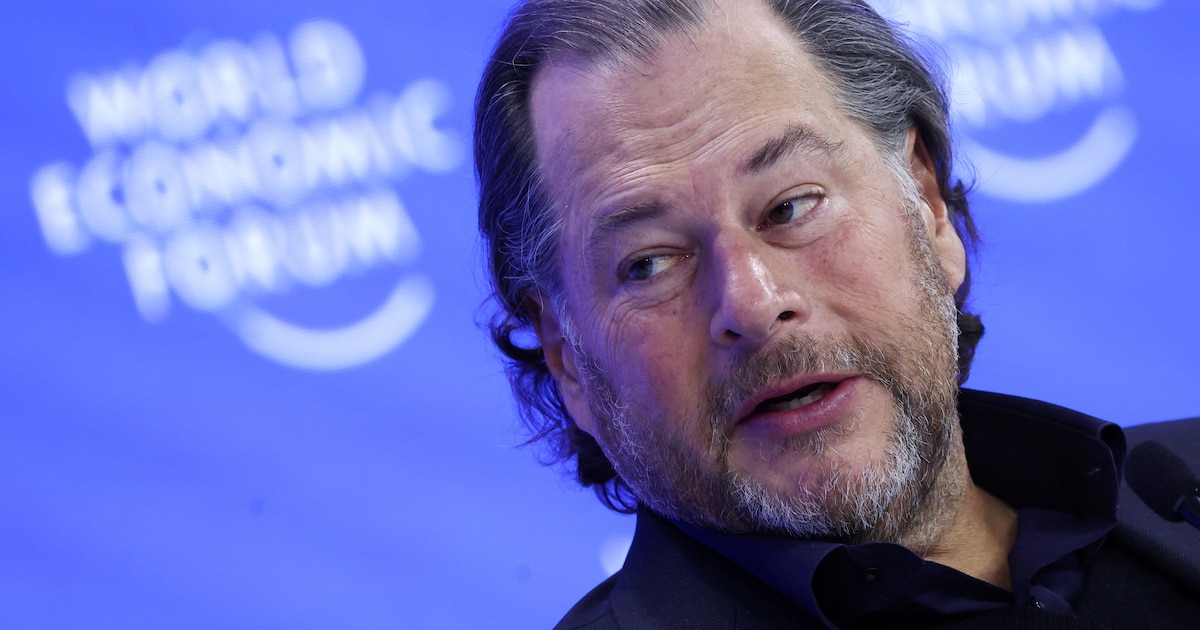 Marc Benioff explicó cómo es el nuevo modelo de organización de la empresa para integrar la inteligencia artificial. (REUTERS/Yves Herman)
