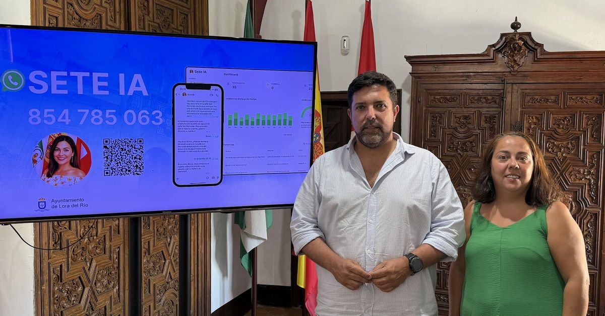 El alcalde de Lora del Río, Antonio Enamorado, junto a la concejala-delegada de Administración 3.0, Vanessa Serrano Aguilar, han presentado un servicio de atención ciudadana a través de WhatsApp, basado en inteligencia artificial, que funcionará bajo el nombre de SETE IA, una operadora virtual que estará disponible las 24 horas del día y los 7 días de la semana.