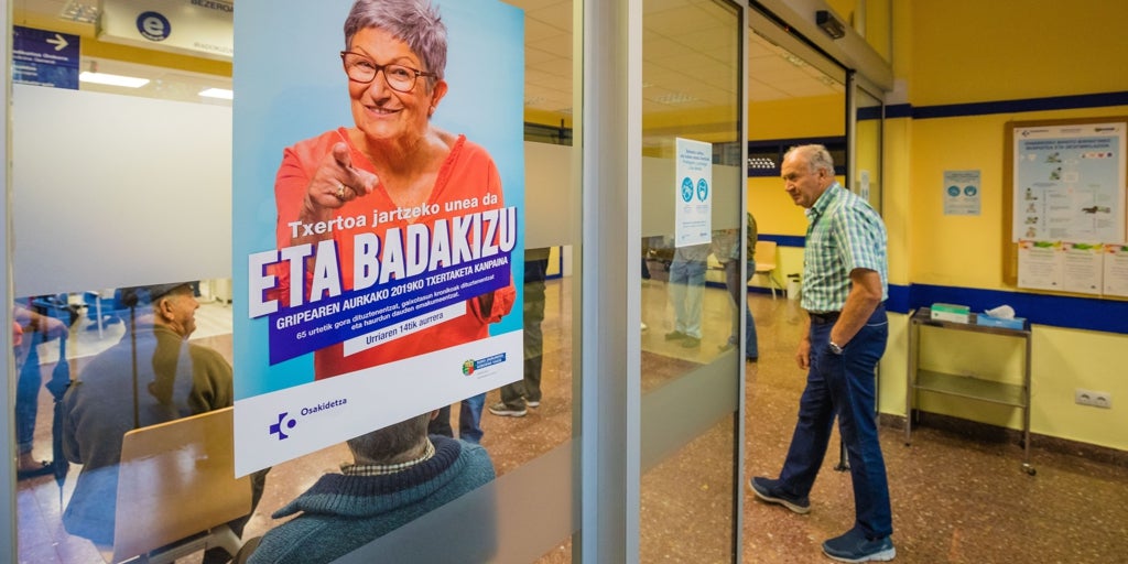 Un centro de la sanidad pública vasca en el que se ve un cartel en la lengua cooficial concienciando a vacunarse el correo